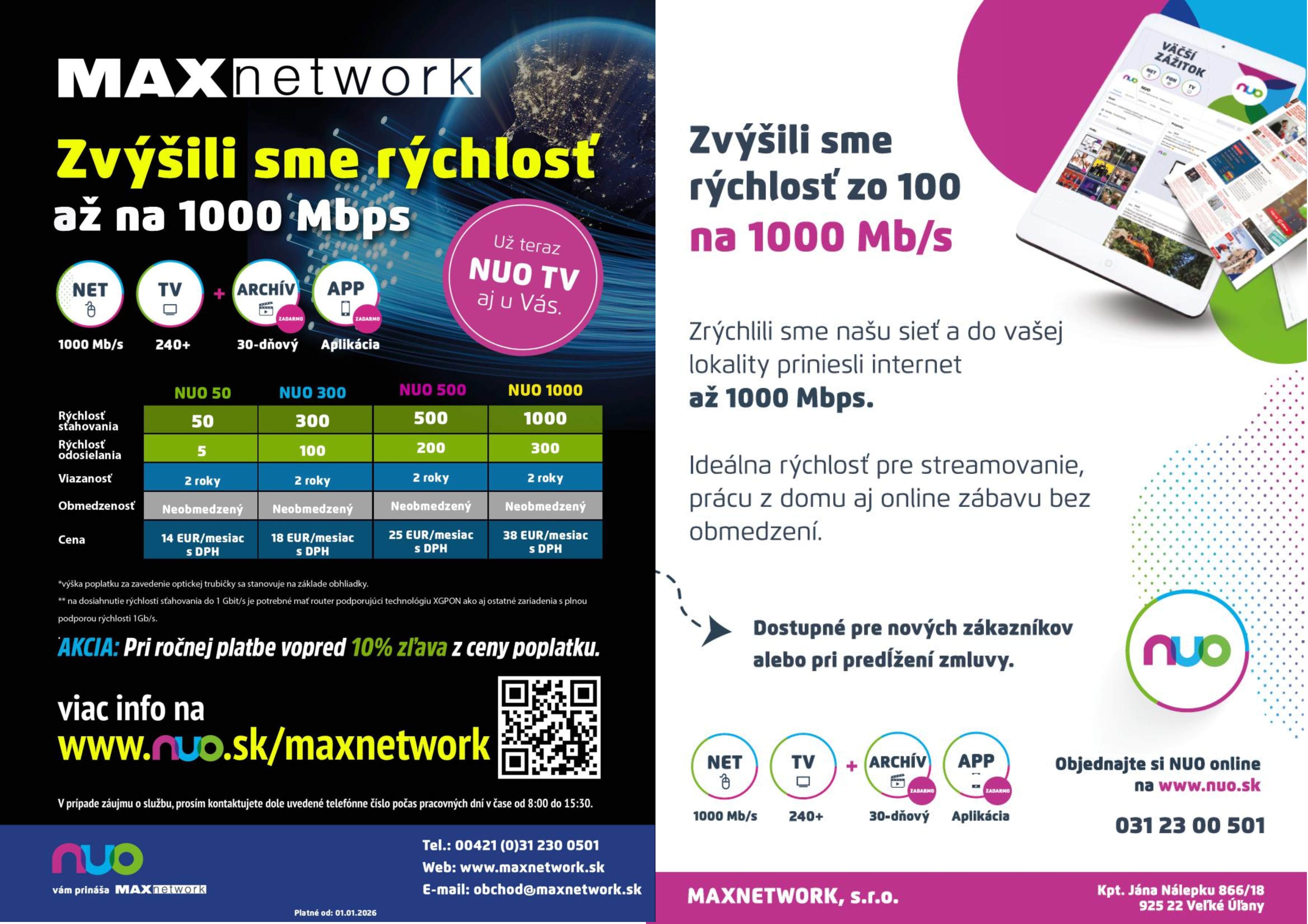 NUO Vám prináša MAXNETWORK. Využívaj všetky výhody NUO a poskladaj si balík služieb podľa svojich potrieb. NUO.sk